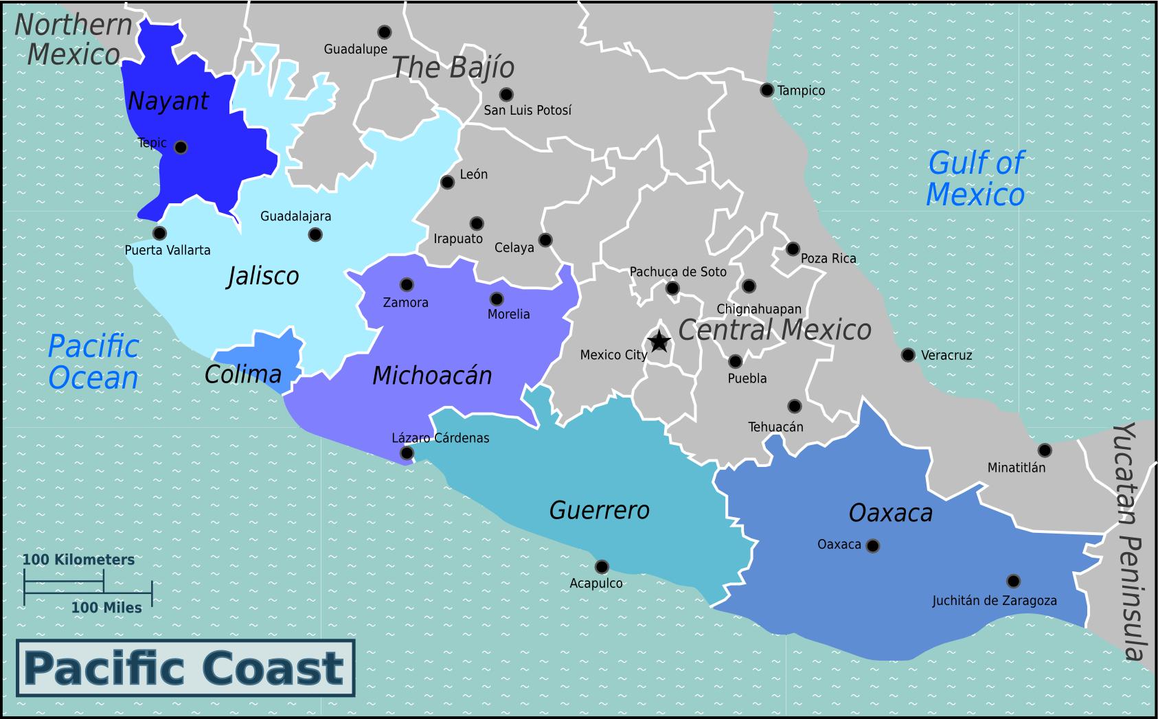 Mexico pacific coast mapa